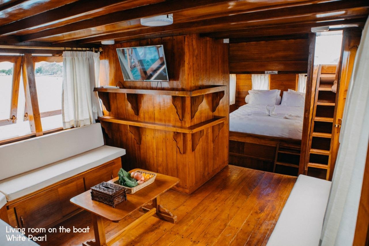 De White Pearl 02 is een luxe Phinisi schoener, gebouwd in 2019. De boot heeft 2 ruime AC hutten met badkamer, een riante zitkamer en een heerlijk lounge zonnedek. De zitkamer heeft een TV en DVD. De boot voldoet aan alle moderne veiligheidseisen.