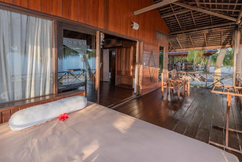 De 22 bungalows hebben alle direct uitzicht over strand en zee, beschikken over airco, muskietennet, minibar, kluisje en een comfortabel terras.