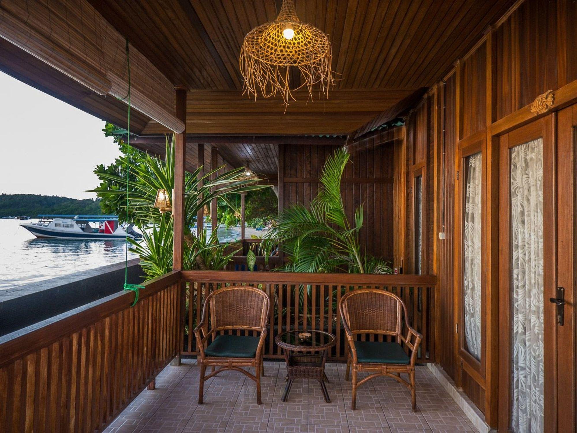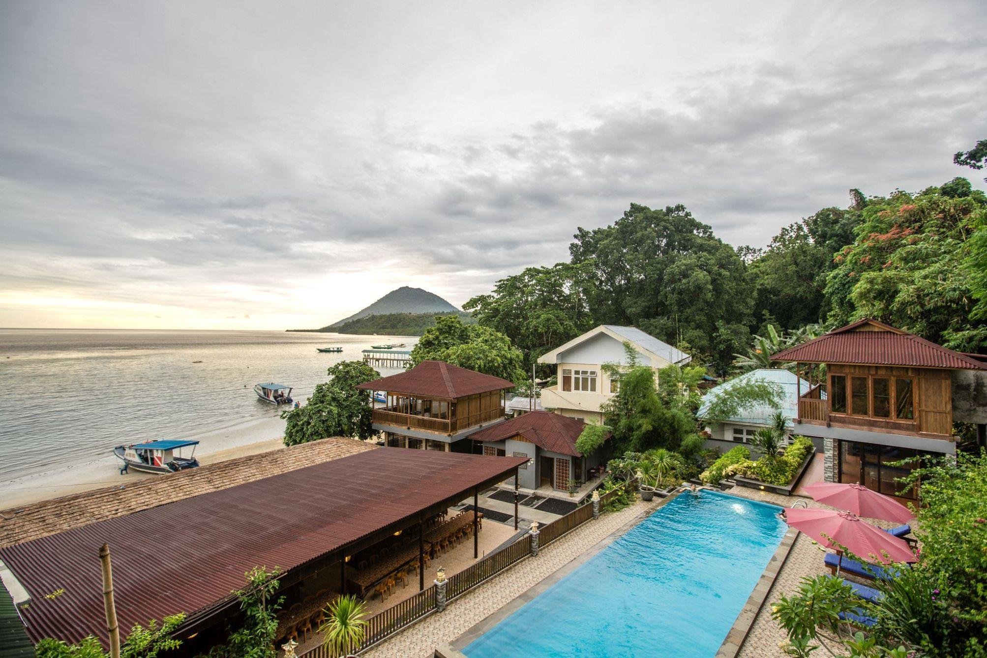 Het Bastianos Bunaken dive resort ligt deels op een heuvel in de baai bij Bunaken.