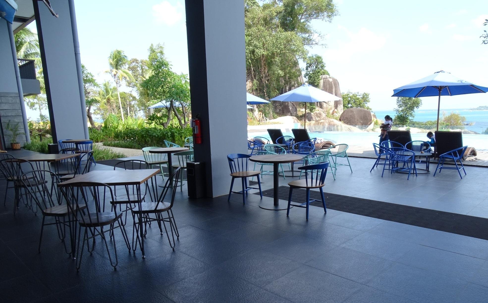 The Swiss Belresort is located on the northwest coast of Belitung Island. The resort is located almost directly on the sea. From the infinity pool you have a beautiful view of the sea and the so typical islands that mark Belitung. There is a good restaurant, beach club, pool bar, swimming pool, children's pool, spa and a lift.
