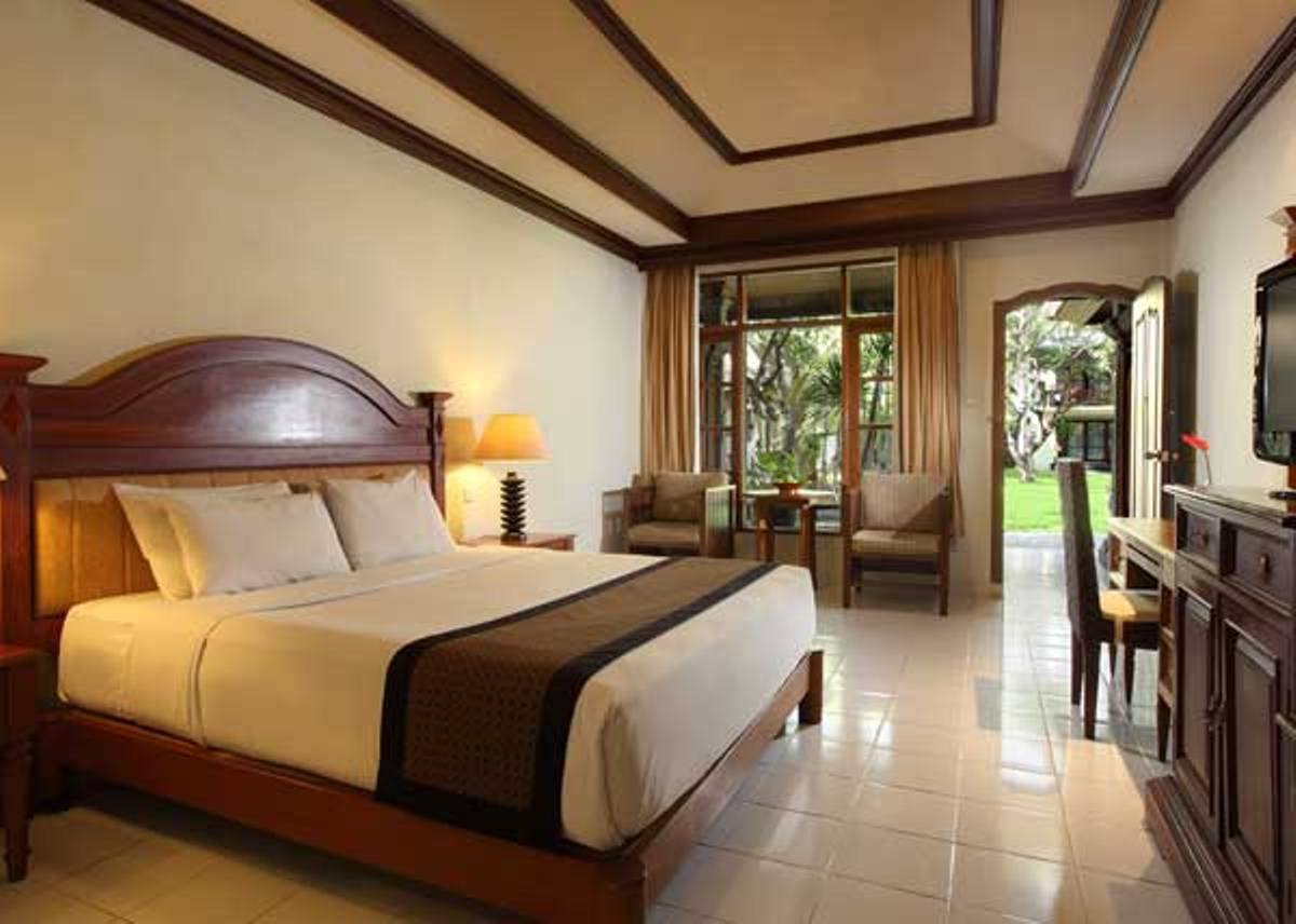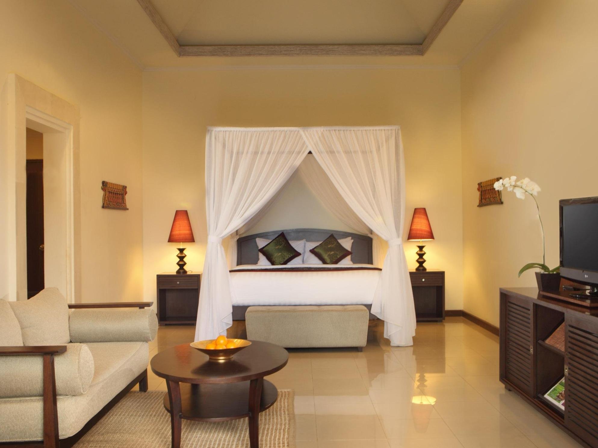 3 restaurants (Indonesian, Balinese, Italian, Japanese, Western and Asian cuisine) and bar, 3 swimming pools, fitness, tennis, spa, sauna, yoga, offer-making and cooking workshops, bicycle excursions, every Monday and Friday fish barbeque on the beach and every Thursday meat barbeque with Jazz music, art gallery, 24 hour room service, laundry service, Kids club, surf lesson, WiFi