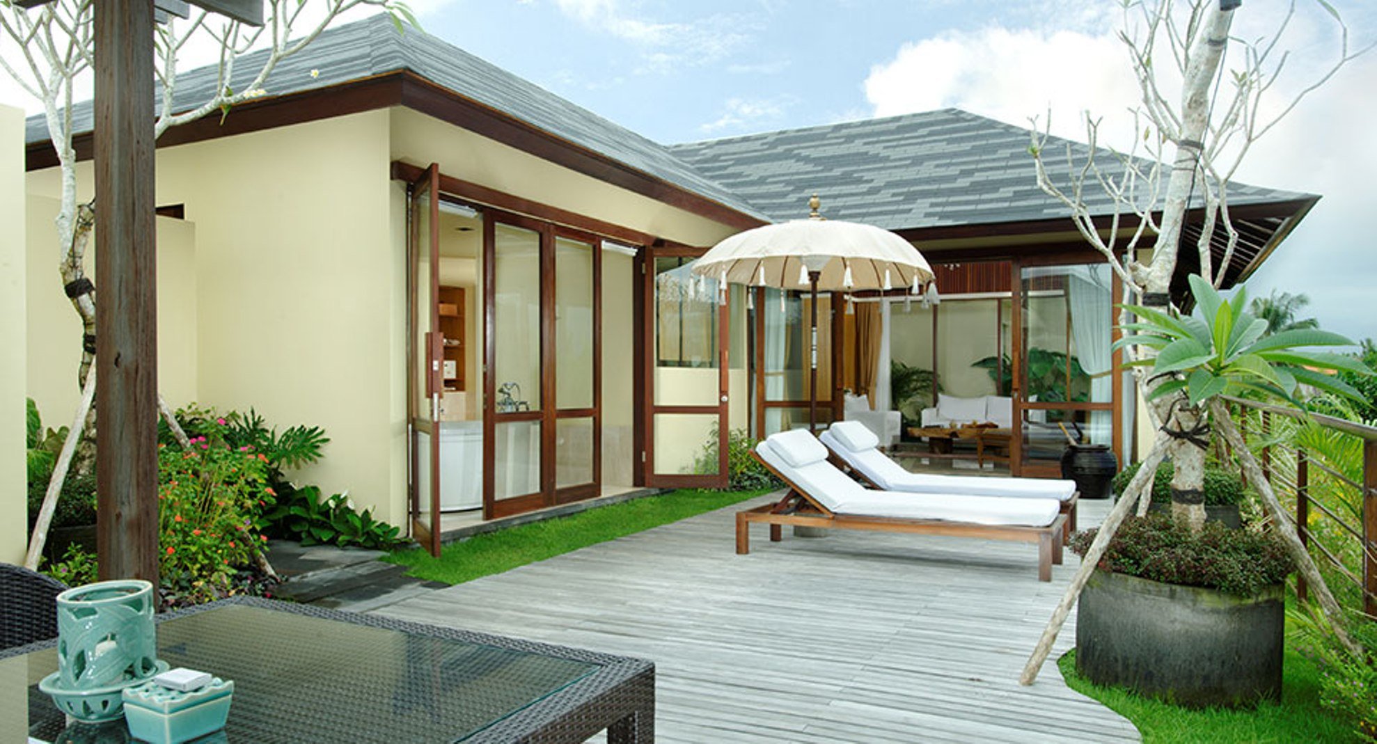 The entrance to the 5 * Komaneka Rasa Sayang is located on the busy street Jalan Monkey forest, in the heart of Ubud. As soon as you reach the lobby you will notice or hear nothing of the crowds anymore and you get a nice warm welcome ‘home’.