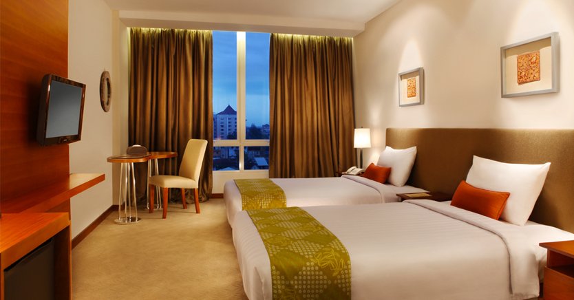The 4 * Jambuluwuk hotel in Yogyakarta is within walking or becak distance from the shopping street Jalan Malioboro, in the centre of the city.