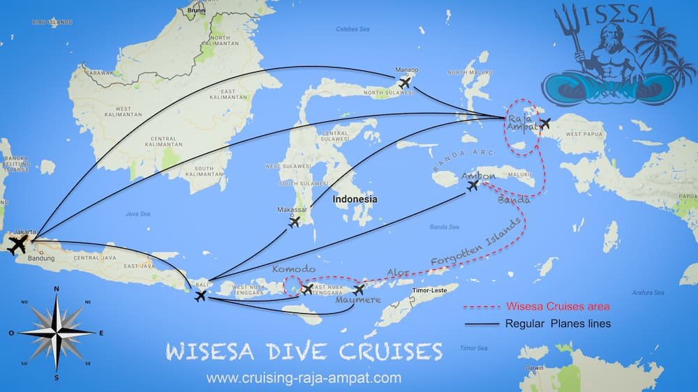 De Wisesa is een houten liveaboard met plaats voor max. 8 gasten, verdeeld over 4 hutten: LOMBOK is equipped with 1 double Bed 140 x 200, Air conditioning, an office corner, and a bathroom (shared with cabin 2) BALI is equipped with 1 double Bed 140 x 200, Air conditioning, and a bathroom (shared with cabin 1) FLORES or HoneyMoon Cabin, is equipped with 1 double Bed 140 x 200, Air conditioning, and a private bathroom. PAPUA is a very large and nice Family or Friends Suite, with 1 Queen size Bed 160×200, & 2 bunk beds 90X200. Office & Sofa Corner, Air conditioning and a large private Bathroom. Zoals de meeste liveaboards is de Wisesa van juni tot medio september te vinden in de wateren bij Komodo. Daarna zet ze koers naar de Oost, een maand in de zuid Molukken en vervolgens tot medio mei in Raja Ampat. meer info more info Informations supplémentaires